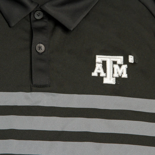 Aggie Football Coaches Exclusive Black Striped Adidas Polo