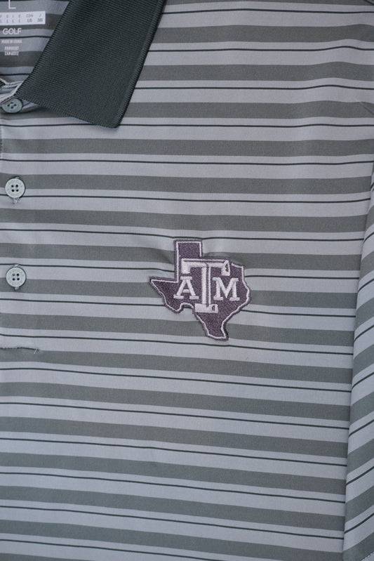 Aggie Football Coaches Exclusive Adidas Grey Stripped Polo (New Arrival)