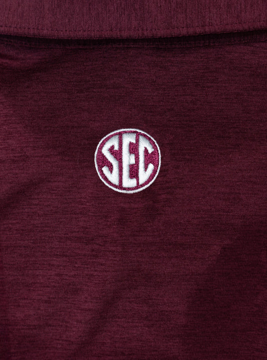 Aggie Golf Exclusive Peter Millar Maroon Aggie Script Polo (SEC Patch)
