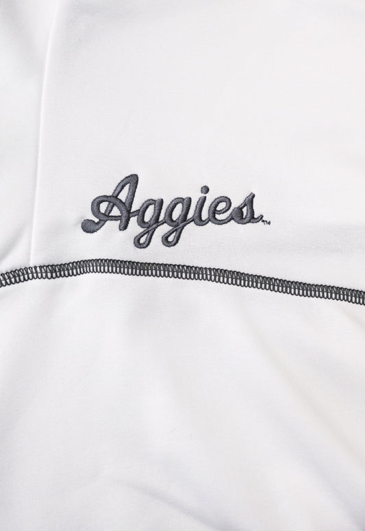 Aggie Football Coaches Issued White Henley Aggie Script Adidas Long Sleeve Shirt (New Arrival)